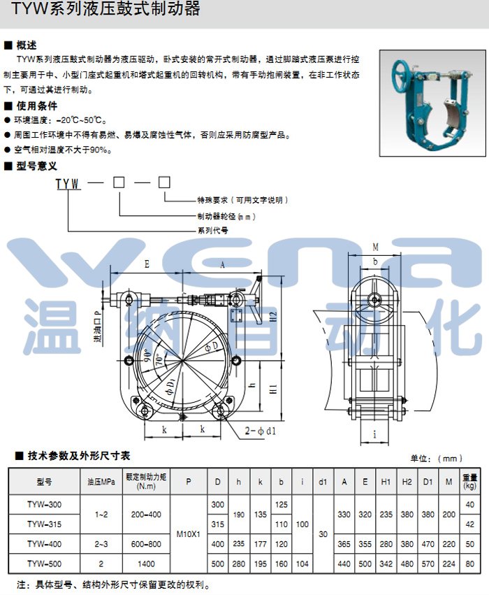 TYW-400,TYW-500,液压鼓式制动器,无锡温纳生产